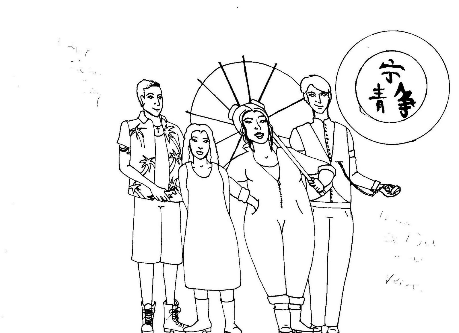 For Father’s day, I was broke, so I drew a picture for my dad with the children as firefly characters. Nick as Wash, Steph as River, Me as Kaylee, and the boyfriend as Dr.Tam. You can’t see it in the scan but it says “Happy Father’s Day, to the best Dad in the ‘Verse!” I’m trying to get it colored in photoshop.
